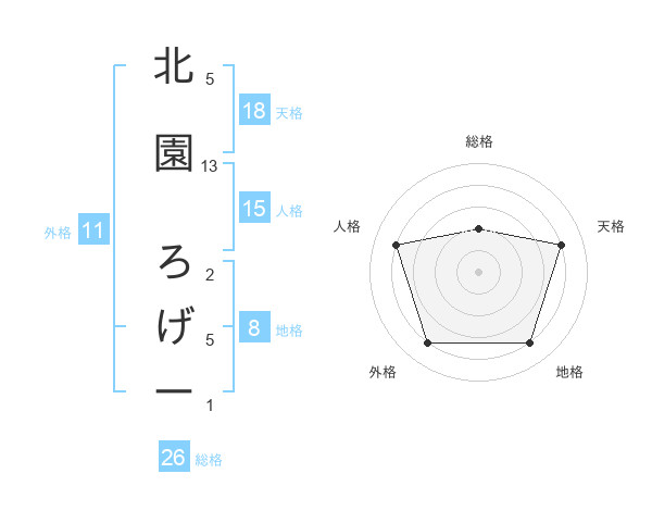 北園 ろげーさんを姓名の画数から五運を鑑定