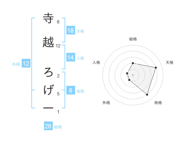 寺越 ろげーさんを姓名の画数から五運を鑑定