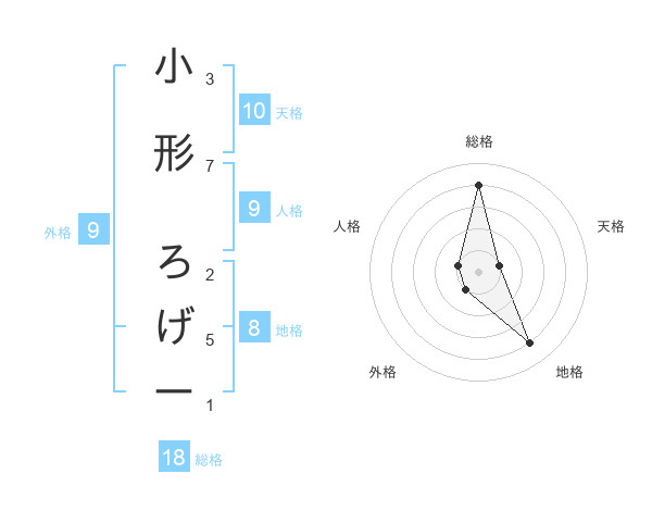 小形 ろげーさんを姓名の画数から五運を鑑定