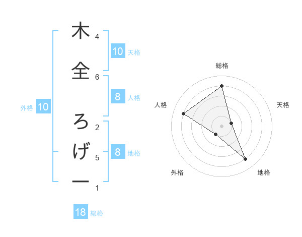 木全 ろげーさんを姓名の画数から五運を鑑定