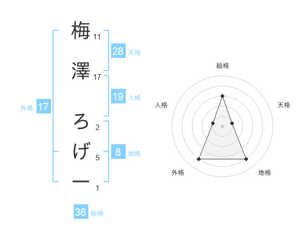 梅澤 ろげーさんを姓名の画数から五運を鑑定