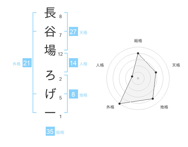長谷場 ろげーさんを姓名の画数から五運を鑑定
