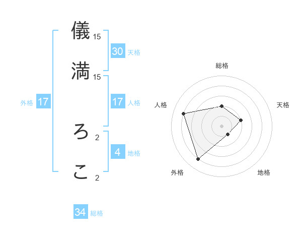 儀満 ろこさんの外格は17画の4点!