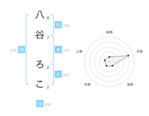 八谷 ろこさんの天格は15画の4点!