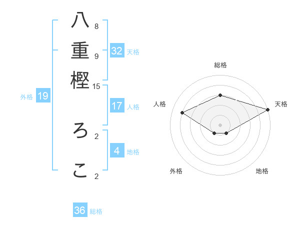 八重樫 ろこさんを姓名の画数から五運を鑑定