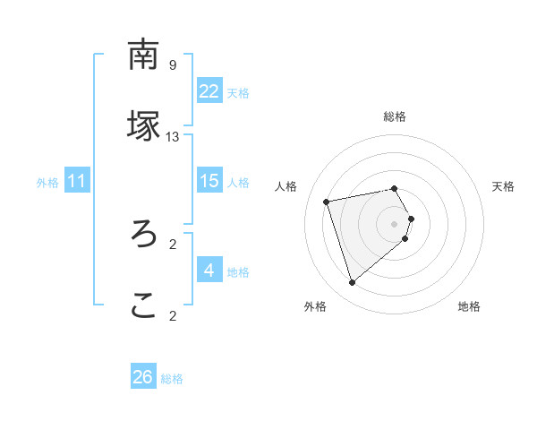 南塚 ろこさんを姓名の画数から五運を鑑定