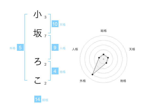 小坂 ろこさんの外格は5画の4点!