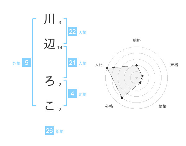 川辺 ろこさんを姓名の画数から五運を鑑定