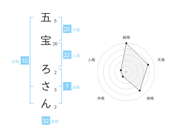五宝 ろさんさんの総格は32画の5点!