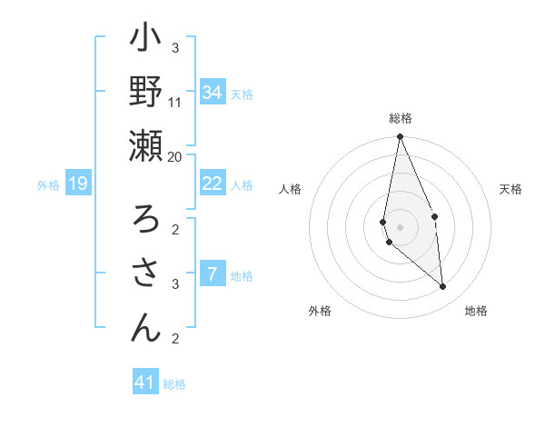 小野瀬 ろさんさんの総格は41画の5点