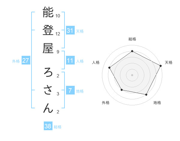 能登屋 ろさんさんを姓名の画数から五運を鑑定