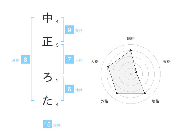 中正 ろたさんの総格は15画の4点!