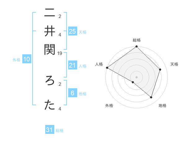 二井関 ろたさんを姓名の画数から五運を鑑定