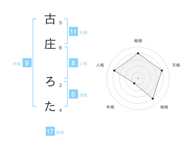 古庄 ろたさんを姓名の画数から五運を鑑定