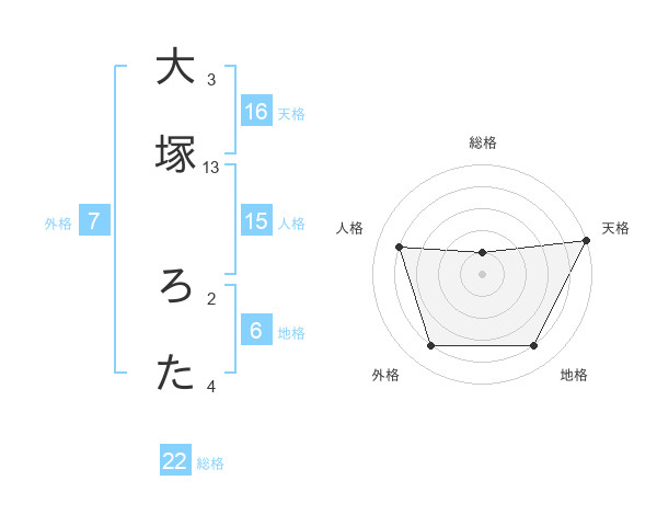 大塚 ろたさんを姓名の画数から五運を鑑定