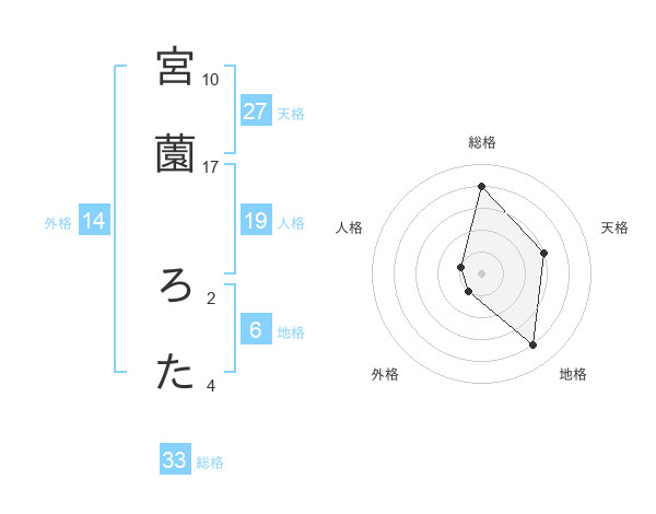 宮薗 ろたさんの総格は33画の4点!