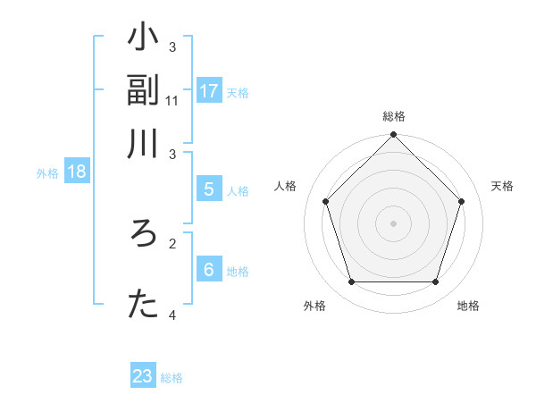 小副川 ろたさんを姓名の画数から五運を鑑定