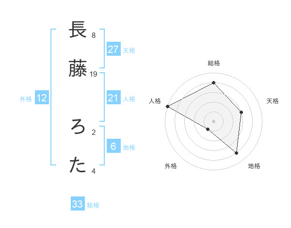 長藤 ろたさんを姓名の画数から五運を鑑定