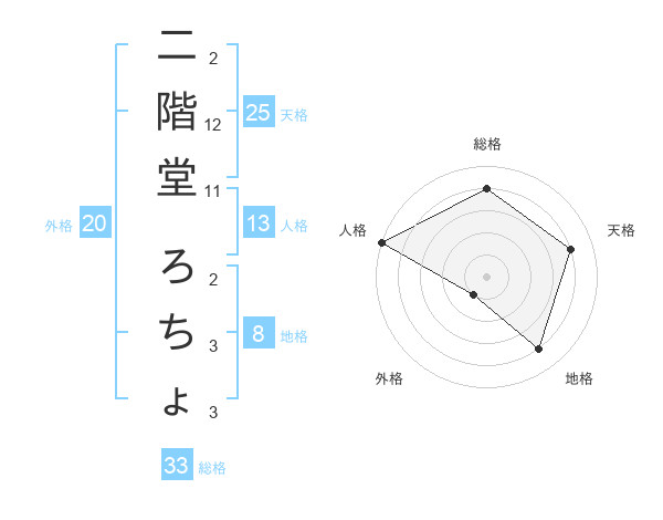 二階堂 ろちょさんを姓名の画数から五運を鑑定