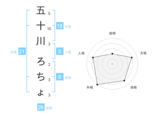 五十川 ろちょさんを姓名の画数から五運を鑑定