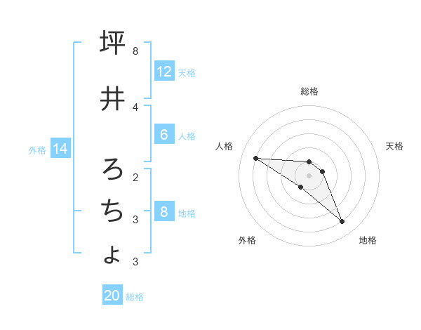坪井 ろちょさんを姓名の画数から五運を鑑定