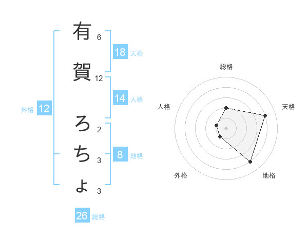 有賀 ろちょさんの総格は26画の2点!