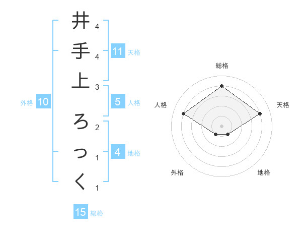 井手上 ろっくさんを姓名の画数から五運を鑑定