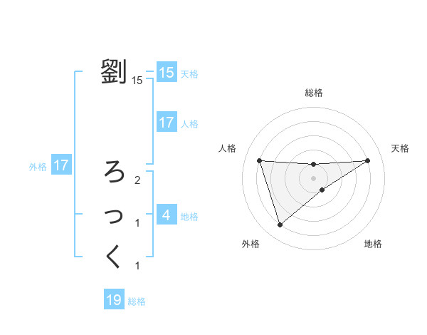 劉 ろっくさんの外格は17画の4点!