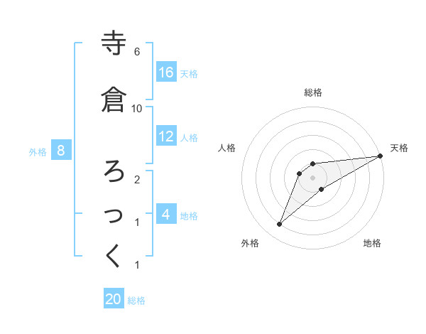 寺倉 ろっくさんの総格は20画の1点!