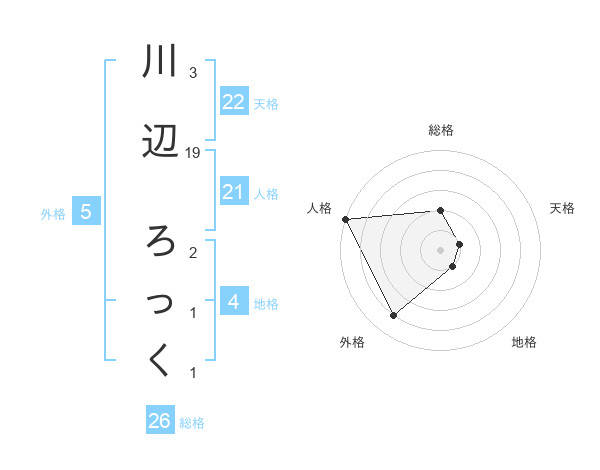 川辺 ろっくさんを姓名の画数から五運を鑑定