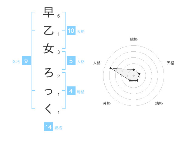 早乙女 ろっくさんを姓名の画数から五運を鑑定