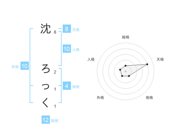 沈 ろっくさんを姓名の画数から五運を鑑定