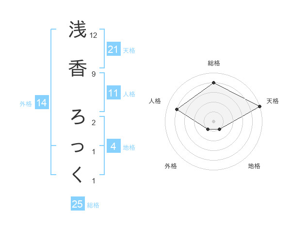 浅香 ろっくさんを姓名の画数から五運を鑑定