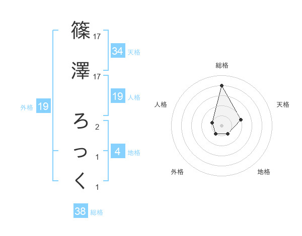 篠澤 ろっくさんの総格は38画の4点!