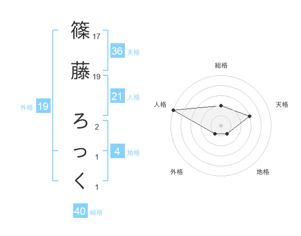 篠藤 ろっくさんを姓名の画数から五運を鑑定
