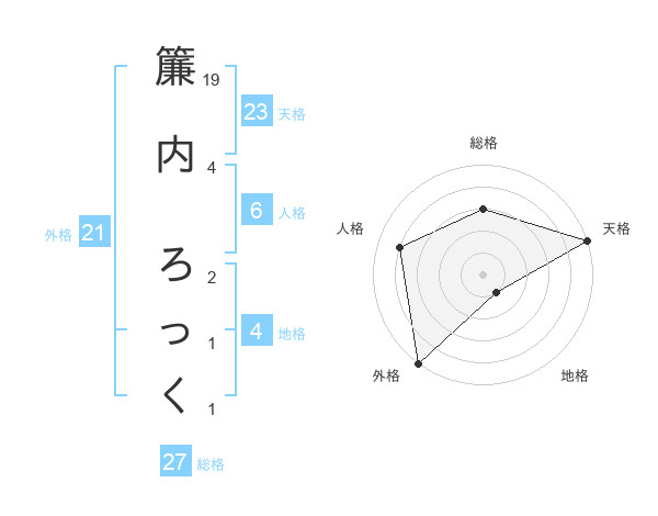 簾内 ろっくさんを姓名の画数から五運を鑑定