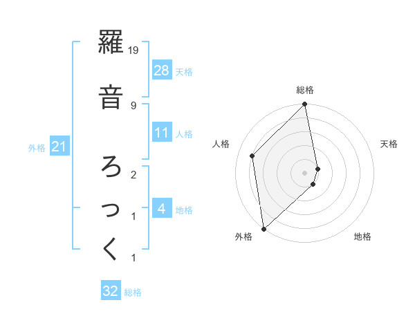 羅音 ろっくさんの外格は21画の5点!