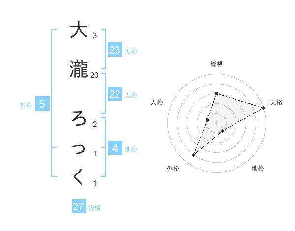 大瀧 ろっくさんの天格は23画の5点!