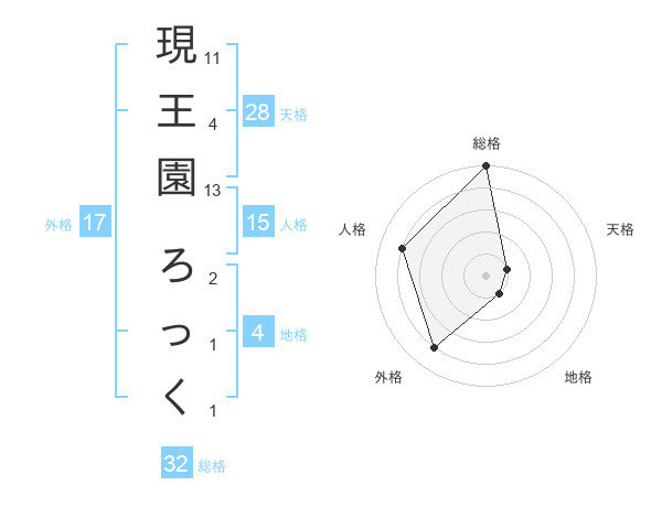 現王園 ろっくさんを姓名の画数から五運を鑑定