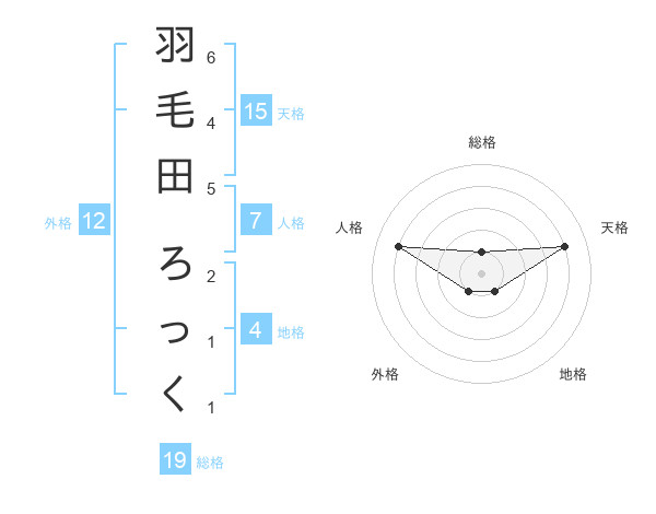 羽毛田 ろっくさんを姓名の画数から五運を鑑定