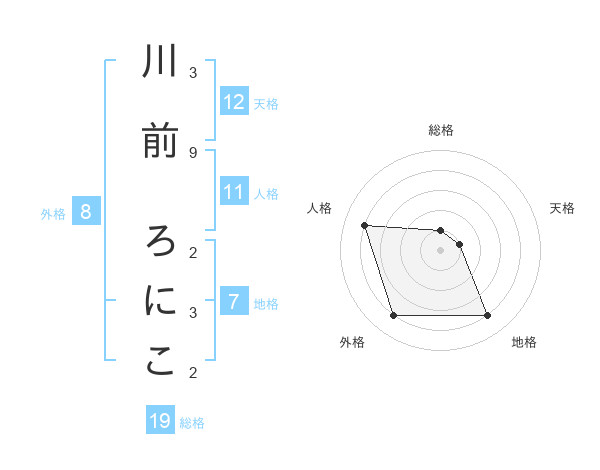 川前 ろにこさんを姓名の画数から五運を鑑定
