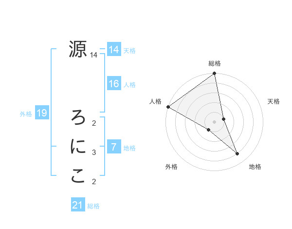 源 ろにこさんの総格は21画の5点!
