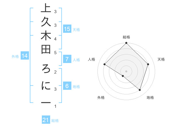 上久木田 ろにーさんの総格は21画の5点!