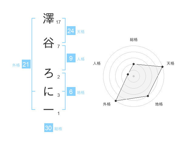 澤谷 ろにーさんの外格は21画の5点!