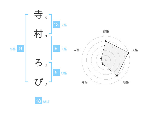 寺村 ろぴさんを姓名の画数から五運を鑑定