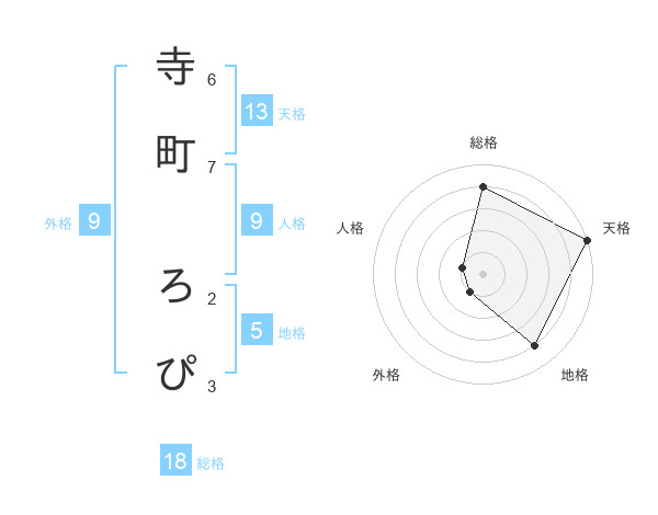 寺町 ろぴさんの天格は13画の5点!
