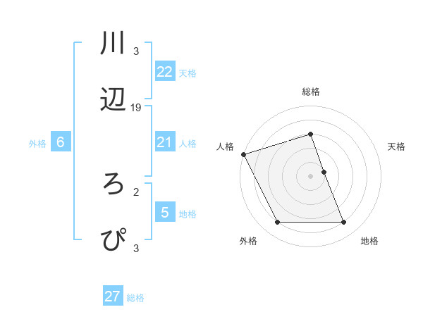 川辺 ろぴさんの総格は27画の3点!