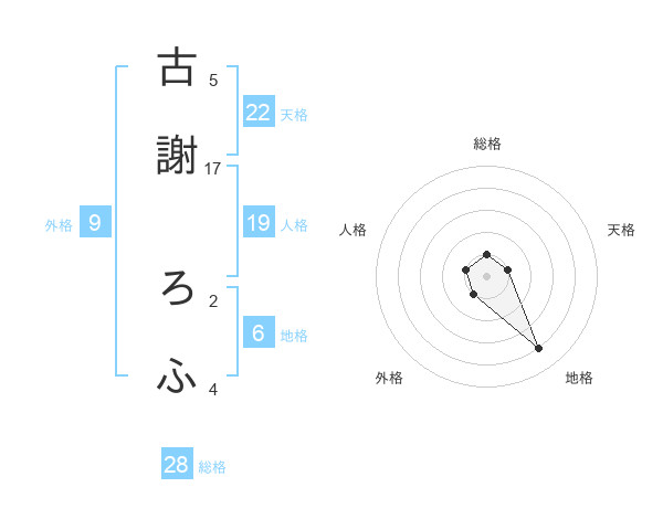 古謝 ろふさんの総格は28画の1点!