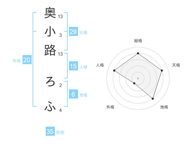 奥小路 ろふさんの総格は35画の4点!