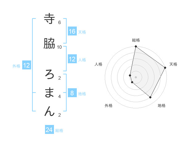 寺脇 ろまんさんを姓名の画数から五運を鑑定